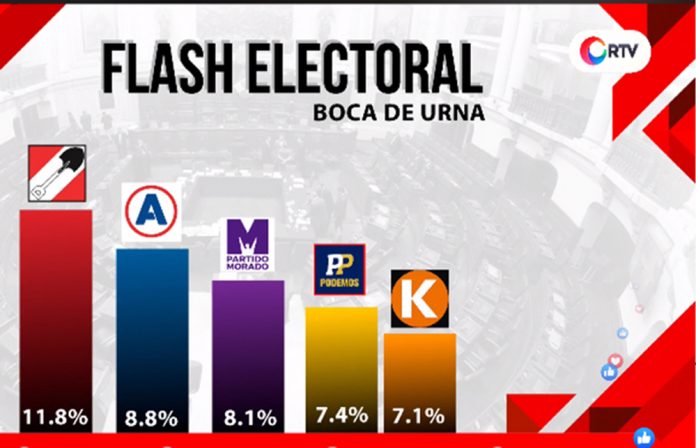 Según la encuesta de opinión los resultados son los siguientes: Acción Popular 11.8%, Alianza para el Progreso 8.8%, Morado 8.1%, Podemos 7.4%, Fuerza Popular 7.1%, Somos Perú 7.0 %, y Frepap 7.0%.