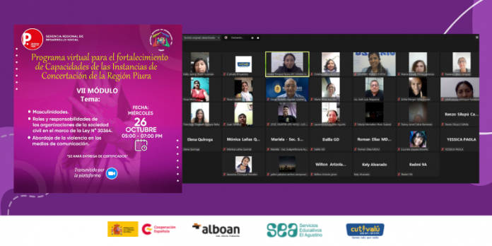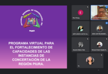 Ayer, 26 de octubre, culminó el Programa virtual para el Fortalecimiento de capacidades de las Instancias de Concertación de la Región Piura. Dicho programa, inició el pasado 18 de mayo, y estuvo a cargo de la Instancia Regional de Concertación para prevenir, sancionar y erradicar la violencia contra las mujeres y los integrantes del grupo familiar (ICR) de nuestra región.