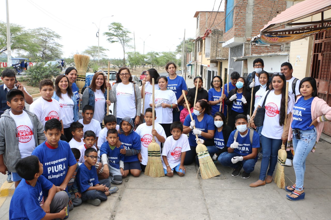 Jóvenes, estudiantes, padres y madres de familia de PERÚ VALORES, tomaron la iniciativa e impulsaron una campaña de limpieza y sensibilización en la ciudad de Piura, con la finalidad de mantener limpia la ciudad y crear conciencia en la población.