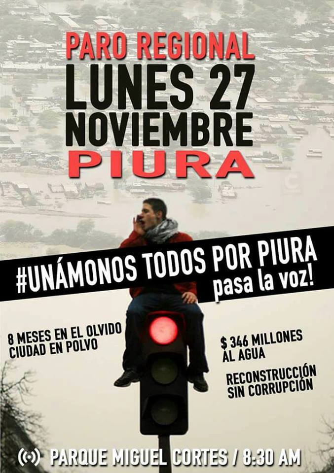 Apoyo contra el desinteres y farsa de las autoridades. Que bonito. Todo es una maravilla. Se gastara en la reconstruccion 30000 millones. Y este año X millones y el proximo otros tantos. Todo son puras proyecciones, trabajo de gabinete, puros numeros noticiosos, pura foto, pero la verdad y realidad es otra pues no hay nada, todo es un hueveo para la gente piurana. Postergaciones y excusas, mas postergaciones y nada. Cultivos temporales? Ciudad satelite? Modulos temporales de vivienda? Carreteras, trochas? Salud? Ayuda?.todo pura farsa.