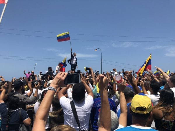 En su discurso, Guaidó, manifestó:«La cadena de mando está rota. Aquí está el presidente encargado de la República de Venezuela», aseguró el líder de la oposición a Nicolás Maduro, Juan Guaidó.
