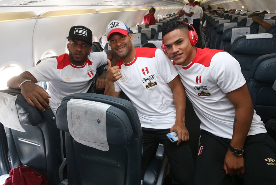 Los jugadores de la selección peruana se animaron a tomarse fotos dentro del avión que los lleva rumbo a Argentina, denotando el optimismo que impera en ellos.