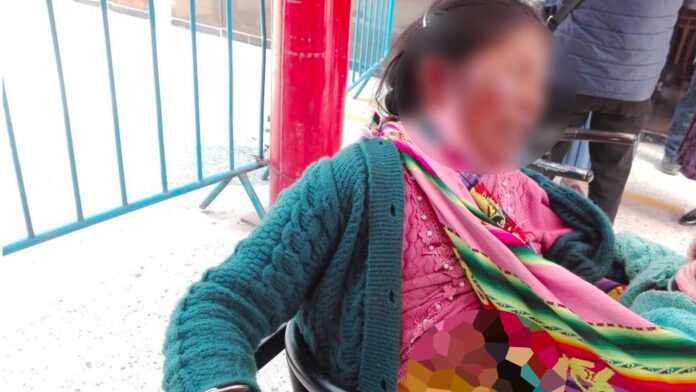 Emilia Mamani Coaquira (41) quien cargaba a un bebé de un año fue encontrada enmarrocada en una de las sillas ubicada próximo a la Comisaría Sectorial del Terminal de Juliaca. La mujer dijo que después de presentar una denuncia de agresión fue detenida y enmarrocada desde el lunes 16 de noviembre.