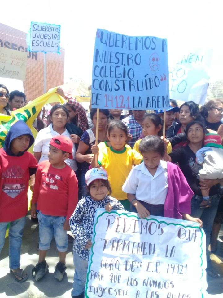 Frente a ello, convocaron a una marcha de protesta para este lunes y exigir a las autoridades poner empeño en este problema y darle solución inmediata antes que dejen el cargo. «Ojalá nos hagan caso porque son varias las protestas que hemos realizado, hasta el Gobierno Regional hemos ido con nuestros niños y niñas, pero no hemos sido atendidos», manifestó Félix Purizaca.