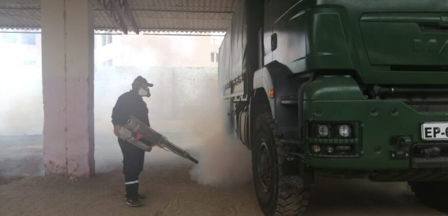 Asimismo, con el objetivo de controlar la proliferación del mosquito Aedes aegypti, se realizó la fumigación de las instalaciones del Agrupamiento de Artillería Coronel José Joaquín Inclán para garantizar la salud del personal militar y civil.
