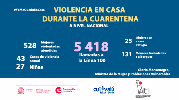 Ministra de la Mujer y Poblaciones Vulnerables, Gloria Montenegro, informó que en estos 17 días de cuarentena, atendieron 5 418 llamadas de mujeres víctimas de agresiones, dentro de ellas 34 fueron víctimas de violación sexual y 538 casos graves de violencia.