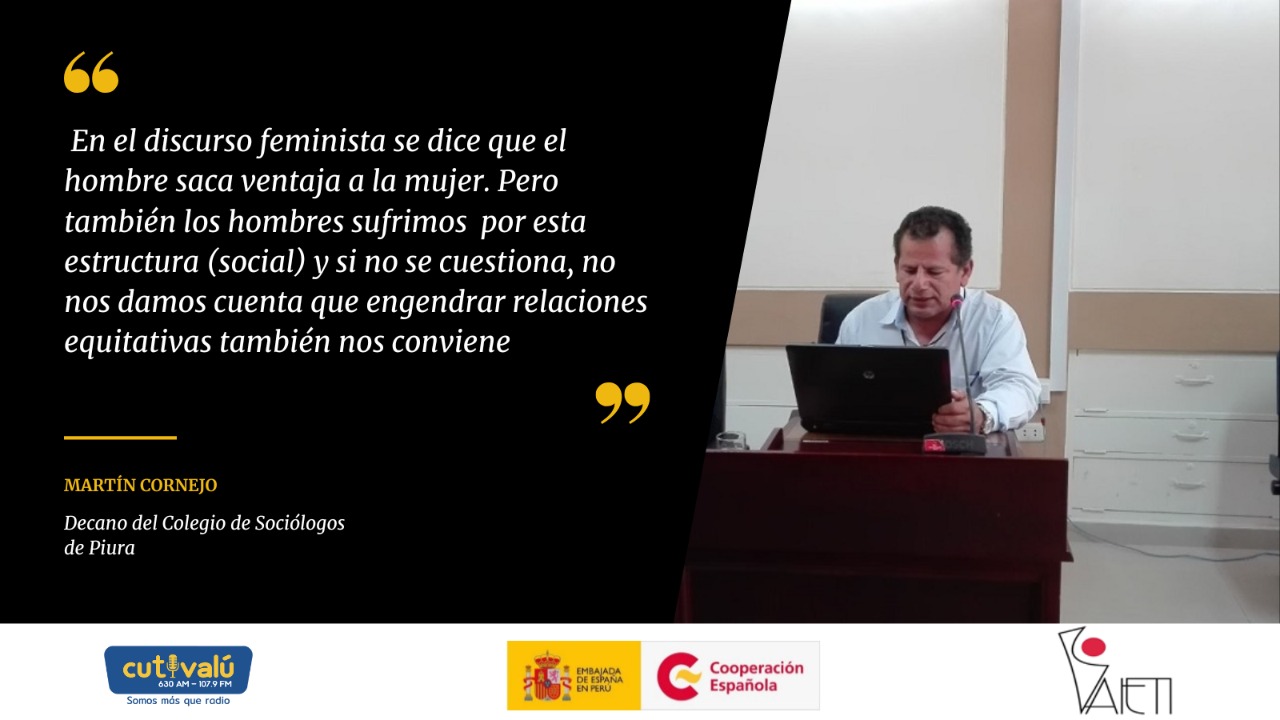Pensar en que un hombre sea el ojo público de un caso de violencia era risible hace años -y lo sigue siendo-. Ante ello, el decano del Colegio de Sociólogos de Piura, Martín Cornejo, sostiene que la sociedad «castra» al hombre y esto impide que pueda desarrollarse como persona. «En el discurso feminista se dice que el hombre saca ventaja a la mujer. Pero también los hombres sufrimos en gran parte por esta estructura (social) y si no se cuestiona, los hombres no nos damos cuenta que engendrar relaciones equitativas también nos conviene«, señala Cornejo.