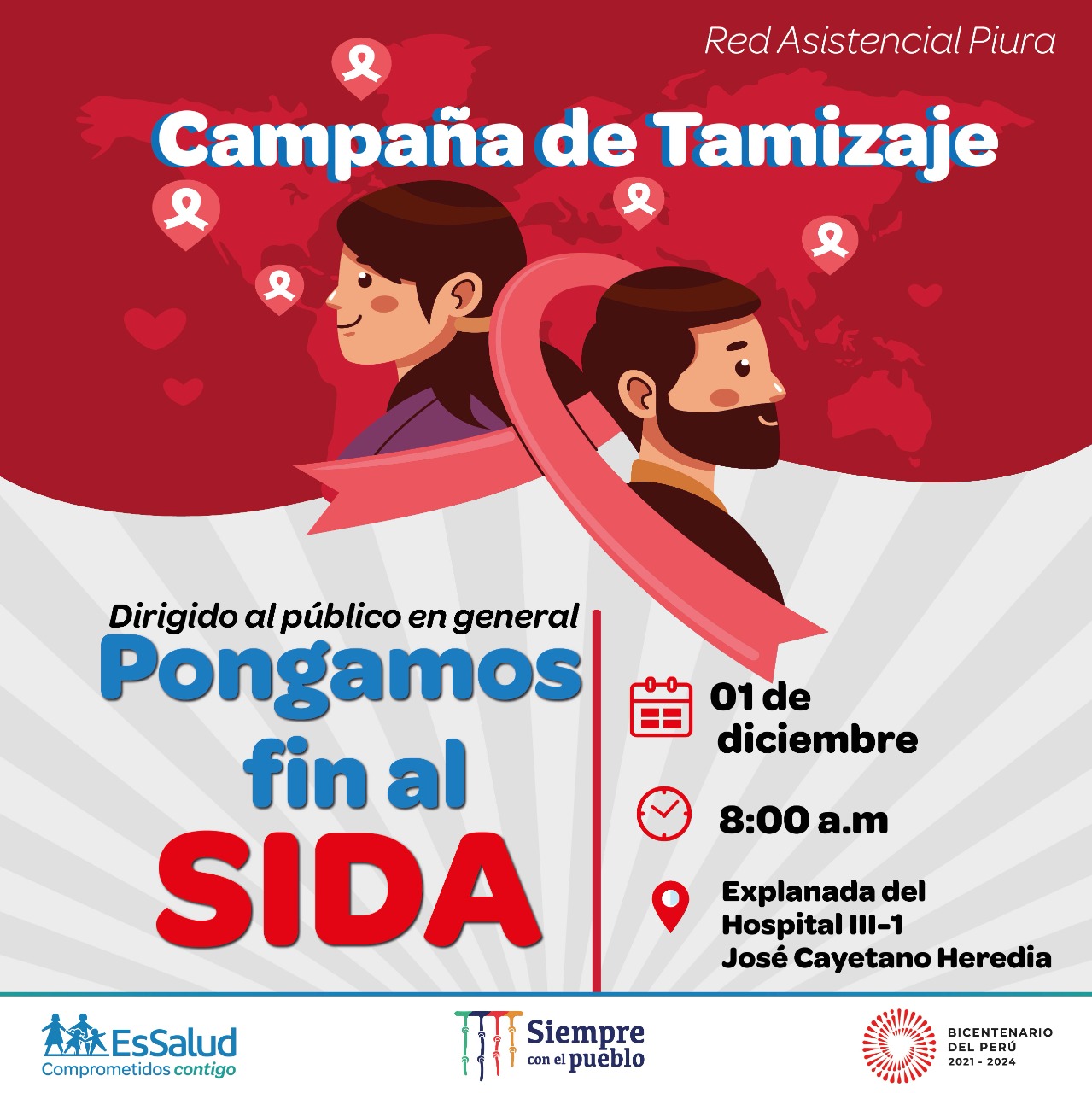 En el marco del día mundial de la lucha contra el sida, se realiza una campaña de tamizaje gratuita de VIH, en la explanada del Hospital III-1 José Cayetano Heredia.