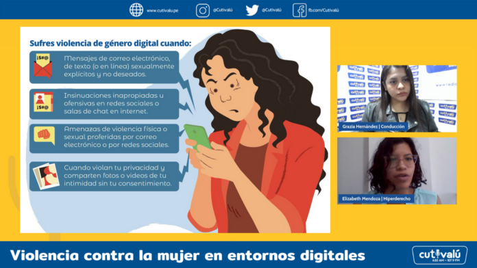 El martes 10 de mayo del 2022, Elizabeth Mendoza Maldonado, coordinadora legal de Hiperderecho, comentó sobre violencia contra la mujer en entornos digitales que afecta a mujeres de diferentes grupos etarios y, muchas veces, no se sabe cómo identificarla ni cuáles delitos están tipificados en nuestra legislación.