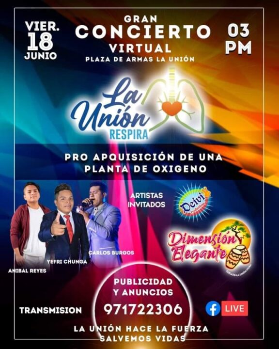 Hasta el momento, la campaña ha recaudado S/100 mil. Sin embargo, la meta es recaudar S/2 millones para lograr costear la planta de oxígeno. Por ello, el próximo 18 de junio, el colectivo realizará un concierto virtual con distintas orquestas e intérpretes musicales. La transmisión del evento se dará a través de la página de facebook de La Unión respira con el corazón, además, en este espacio virtual, las empresas podrán comprar publicidad.