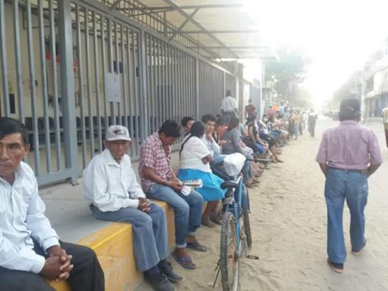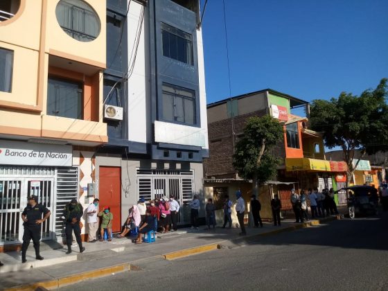 Las oficinas del Banco de la Nación amanecieron este lunes 23 de marzo con largas colas de piuranos y piuranas, para cobrar el bono de S/ 380 anunciado por el presidente Martín Vizcarra.