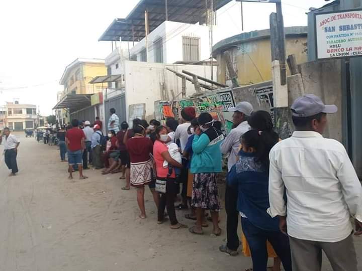 #PREOCUPANTE‼ En #Sullana esta es la situación en los exteriores del Banco de la Nación. La gente hace cola sin respetar el metro y medio de seguridad.#YoMeQuedoEnCasa #QuédateEnCasa #CutivalúTeInformará