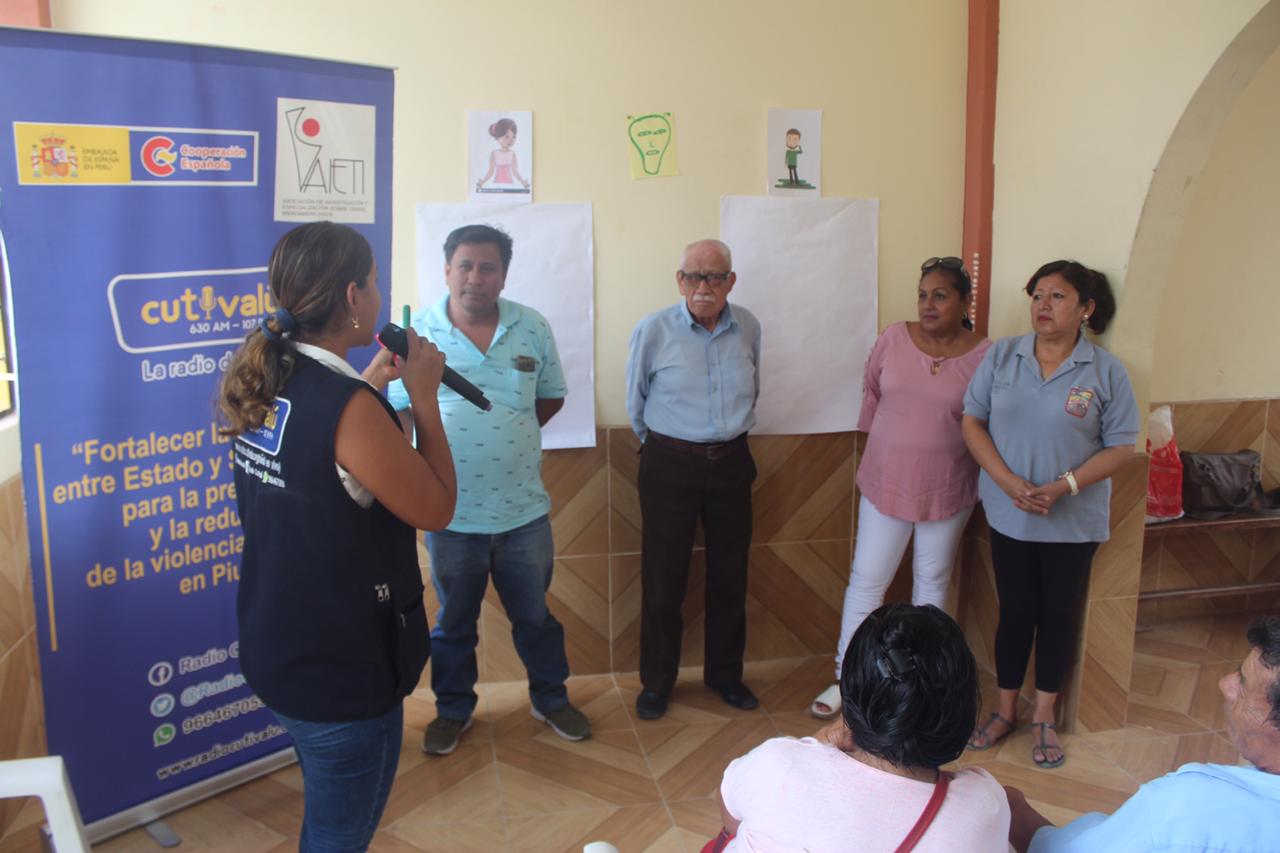 Cutivalú realiza el primer taller, del segundo año de trabajo del proyecto “Fortalecer la articulación entre estado y sociedad civil para la prevención y la reducción de la violencia de género en Piura” en conjuntamente con la Agencia Española de Cooperación Internacional Para el Desarrollo (AECID) y la Asociación de Investigación y Especialización Sobre Temas Iberoamericanos (AIETI) , con los miembros de las juntas vecinales comunales (JUVECO) del distrito de Veintiséis de Octubre.