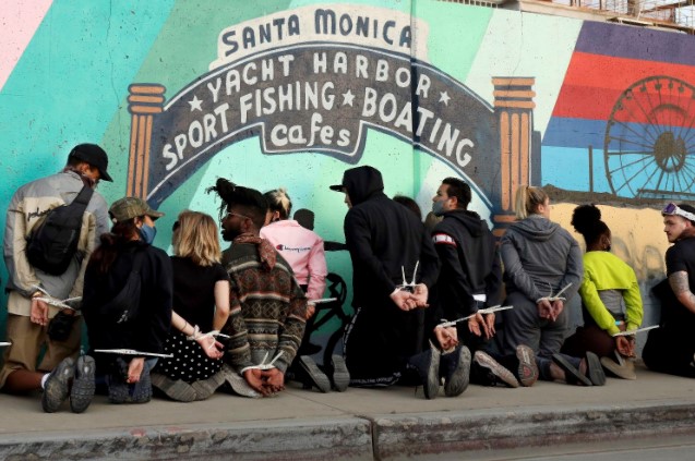 Santa Mónica anunció un toque de queda a partir de las cuatro de la tarde, más de ocho horas antes del anochecer. La policía dispersó las protestas, pero la persecución y detención de los violentos y los saqueadores duró hasta bien entrada la noche, con escenas de violencia desconocidas en la turística ciudad playera de Los Ángeles.