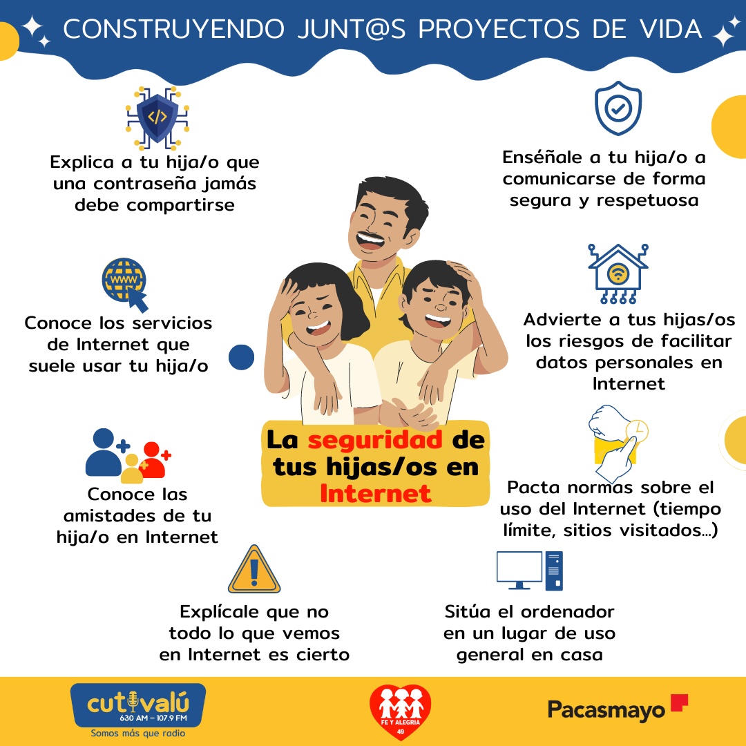 A continuación les compartimos algunas reglas para cuidar la seguridad de nuestras hijas e hijos en Internet.