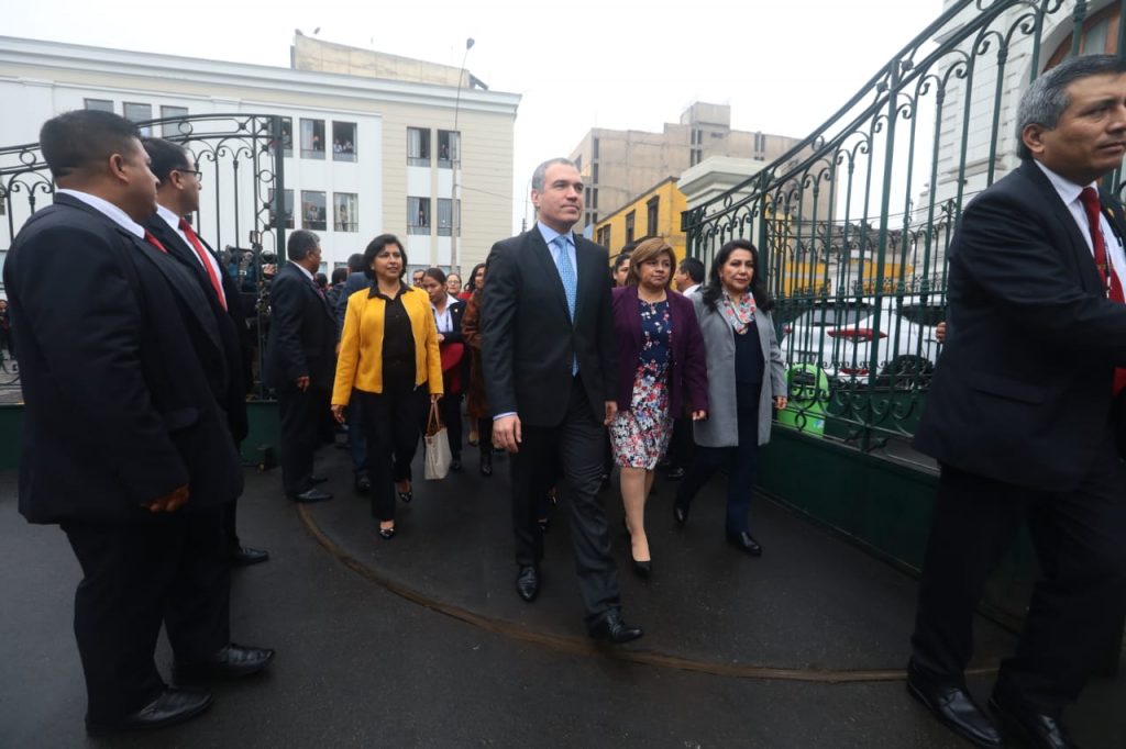 El premier Salvador del Solar en su ingreso al Congreso junto a los ministros y ministras