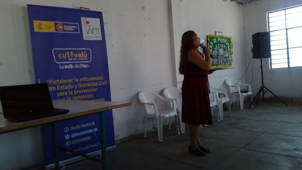 Continuando con la labor de capacitar e informar a los diversos sectores de la sociedad para la prevención y reducción de la violencia de género en Piura, el viernes 12 de julio, Cutivalú gracias al respaldo de la Agencia Española de Cooperación Internacional Para el Desarrollo, realizó la segunda jornada de capacitación a juntas vecinales del distrito de Veintiséis de Octubre.
