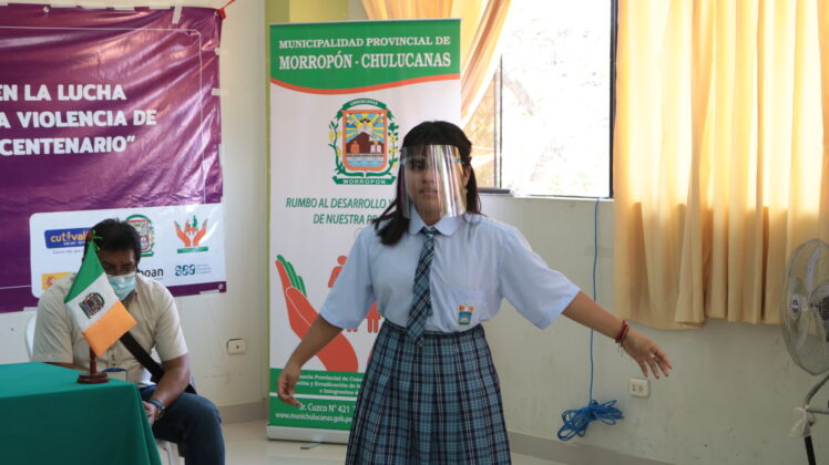 Los escolares ganadores del Concurso «Yo Pongo el hombro contra la violencia… Ponlo tú también», que se realizó el 23 de septiembre en Chulucanas, también participaron del encuentro, presentando sus bailes y poemas a las lideresas de la red y a los funcionarios de Chulucanas.