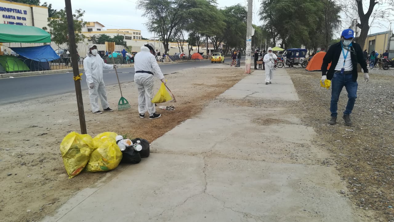 Desde tempranas horas, personal de la Municipalidad de Veintiséis de Octubre del área del Programa de Segregación en la Fuente realizó un operativo de limpieza, recolección y sensibilización en los exteriores del Hospital de Apoyo II Santa Rosa, exhortando a las personas a depositar sus residuos en los contenedores dispuestos para el acopio de basura.