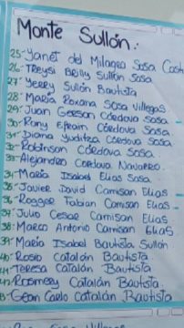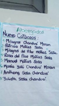 Lista de damnificados ubicados en la Iglesia del Nazareno Fe, en Chiclayito – Piura