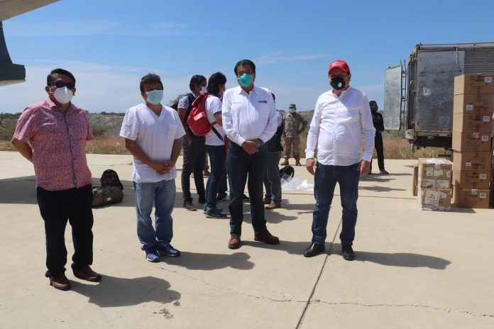 El ministro de Vivienda, Rodolfo Yánez, entregó al gobernador regional de Piura, Servando García cinco ventiladores eléctricos, más de 16 mil pruebas rápidas, medicamentos y mascarillas; todo ello como parte de las acciones de lucha contra el COVID-19.