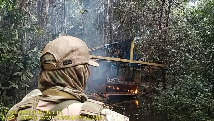 Cerca de 20 dragas empleadas para la extracción ilegal de oro fueron destruidas en la cuenca alta del río Nanay, en Loreto, durante un megaoperativo desarrollado entre el 11 y el 19 de octubre. La intervención, considerada una de las más amplias del año en la región, también incluyó la eliminación de campamentos mineros y la incautación de alrededor de 6 500 galones de combustible, insumo clave en esta actividad ilícita.