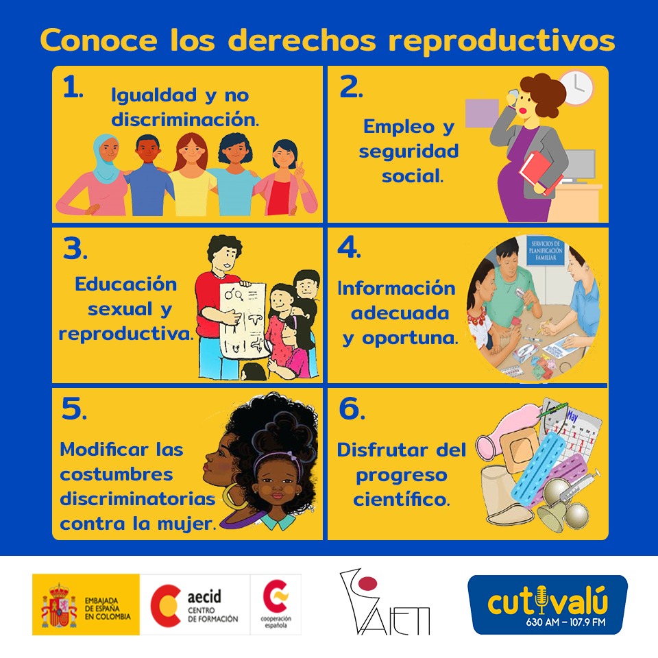 Destacando con en el consultorio Palabra de Ley, emitido los martes de 8:30 a 9:00a.m por Cutivalú y en las redes sociales flyer sobre los 12 derechos reproductivos.