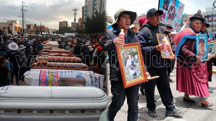 Hoy, en respaldo a la Gran Marcha Nacional por la Democracia, cientos de pobladores de Juliaca protestan para exigir la renuncia de Dina Boluarte Zegarra y justicia para las 18 víctimas que fueron asesinadas el último 9 de enero durante las protestas en contra de la mandataria. Representantes de la asociación de víctimas del 9 de enero lamentaron que, a la fecha, no haya justicia para aquellos ciudadanos que fueron ultimados por la represión policial.