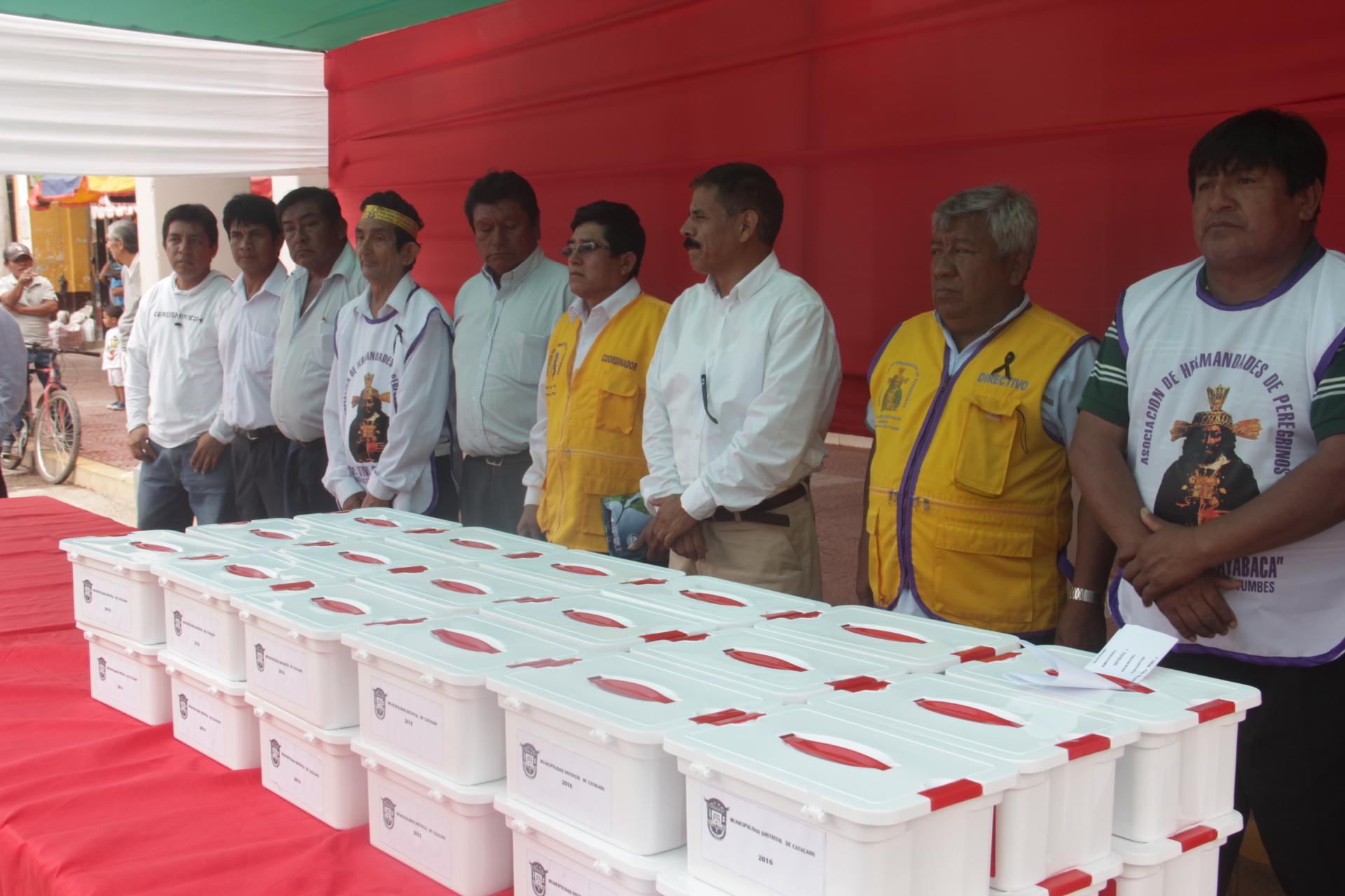 La Municipalidad de Catacaos hizo la donación de botiquines que les permita calmar alguna dolencia que se les presente a largo de su caminar. El alcalde José Cieza pidió a los caminantes, especialmente a los jóvenes que esta peregrinación debe generar un cambio de vida y renovación del alma.