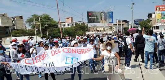 Más de 2 mil profesores y profesoras de la región Piura marchan por las calles de la ciudad para exigir el cierre del Congreso, y adelanto de elecciones. César Rivera Córdova, virtual decano del Colegio de Profesores de Piura, señaló que esta marcha es pacífica, y busca sumarse al pedido de la población para exigir … Sigue leyendo Más de 2 mil docentes de la región Piura marchan para exigir el cierre del Congreso