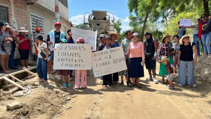 Pobladores del asentamiento humano Tacalá, en el distrito de Castilla, realizaron una protesta para exigir su inclusión en un proyecto de pistas y veredas que ejecuta el Gobierno Regional. Los vecinos denuncian que el expediente técnico dejó fuera dos cuadras del sector, lo que afecta a cerca de 60 familias.