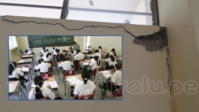 Los estudiantes del colegio San Martín de Porres, en el distrito de Veintiséis de Octubre, no pueden regresar a clases porque su local ha sido recientemente declarado en riesgo. Los padres y profesores exigen la reconstrucción de las aulas y cerco perimétrico que tienen rajaduras y huecos.