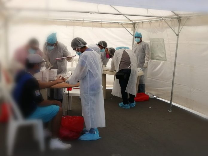 Los comerciantes fueron sometidos desde la mañana al test de la prueba serológica de descarte del coronavirus (covid-19), con la finalidad de identificar a la población contagiada que labora en estos rubros que concentran gran cantidad de personas.