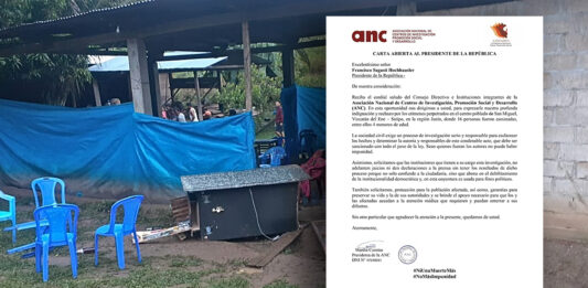 A través de carta dirigida al presidente Francisco Sagasti, la Asociación Nacional de Centros de Investigación, Promoción Social y Desarrollo (ANC) rechazan los crímenes perpetrados en el centro poblado de San Miguel, Vizcatán del Ene – Satipo, en la región Junín, donde 16 personas fueron asesinadas, entre ellos 4 menores de edad. Por ello, exigen … Sigue leyendo Masacre en el VRAEM: ANC pide a instituciones que investigan el hecho y no adelanten juicios