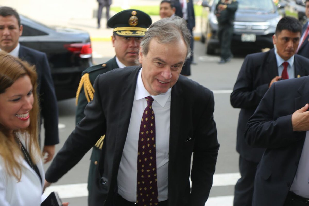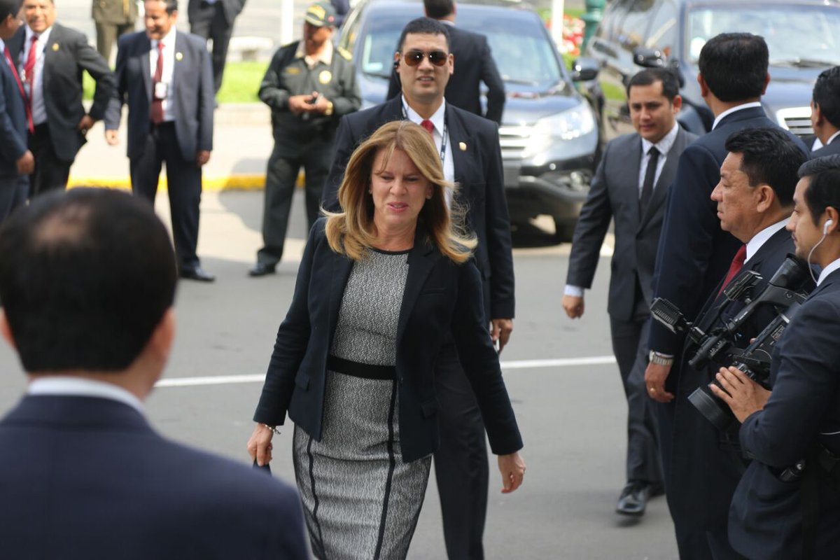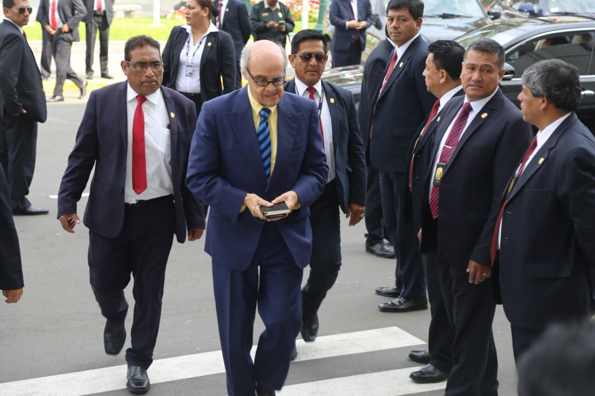 Mercedes Aráoz y sus ministros, llegan al @congresoperu para sesión de investidura.