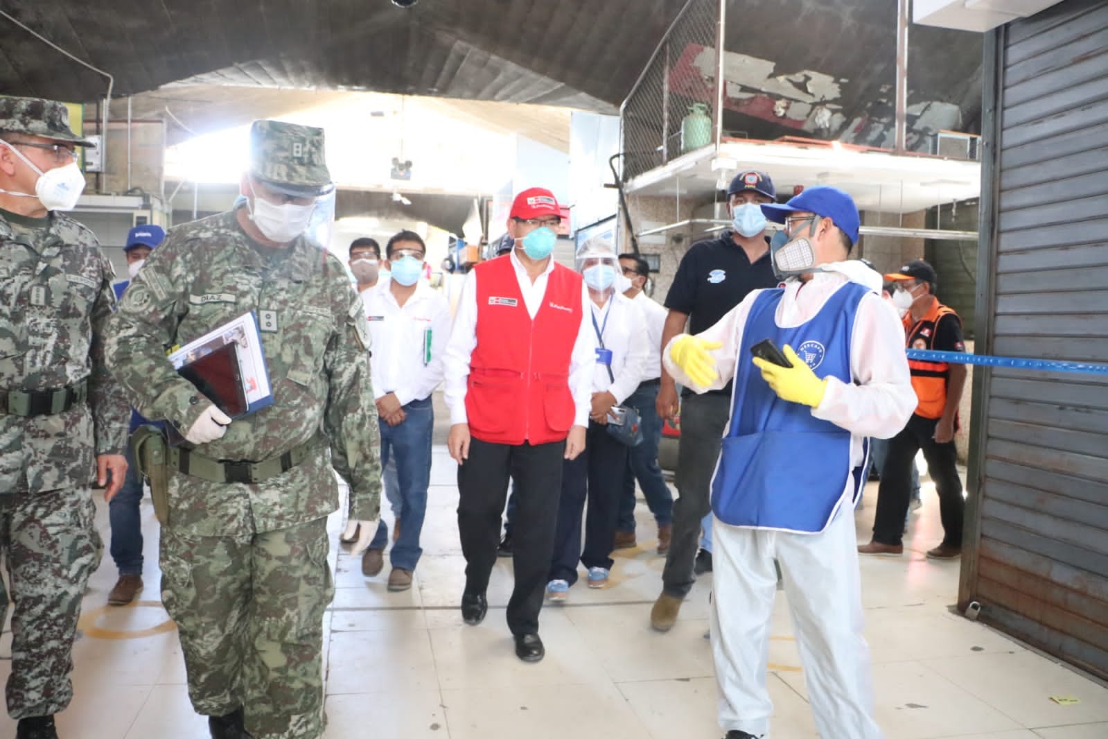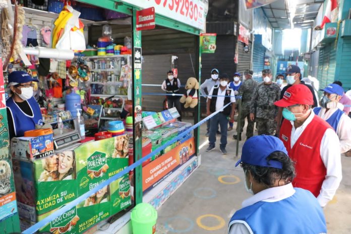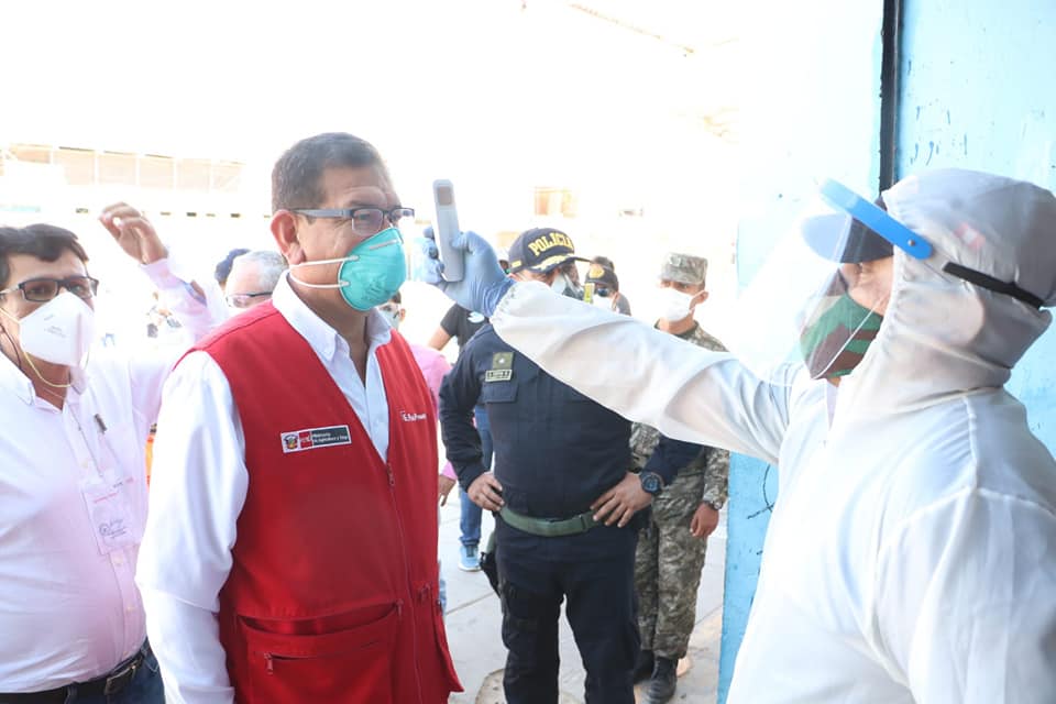 El ministro de Agricultura, Jorge Montenegro, supervisó los protocolos de bioseguridad en el mercado modelo de Piura, junto con el general de la I División del Ejército, Walter Córdova y el alcalde de Piura, Juan José Díaz.