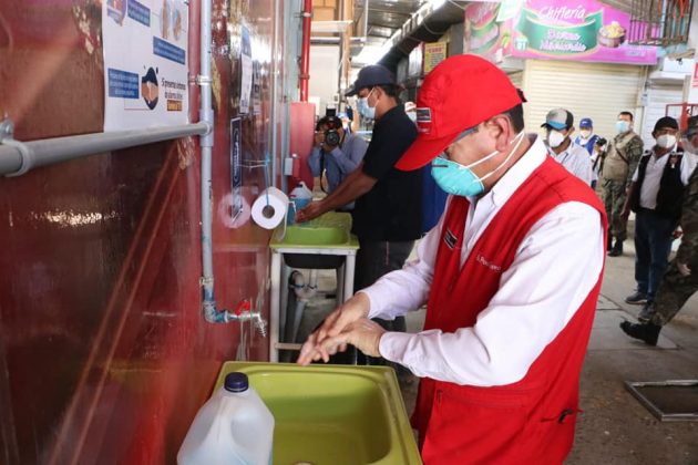 El titular de Agricultura, Jorge Montenegro, llegó a Piura y supervisó el mercado modelo de Piura donde los comerciantes vienen implementando protocolos de bioseguridad para expender sus productos.