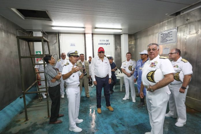 Como parte de su agenda de trabajo en la región Piura el Ministro de Defensa, José Huerta, inspeccionó la Estación Naval Paita, donde la @naval_peru tiene un proyecto para la remodelación y ampliación del muelle que beneficiará a los pescadores de la zona. #EstamosJuntosEnEsto pic.twitter.com/SRV1pkYuID
