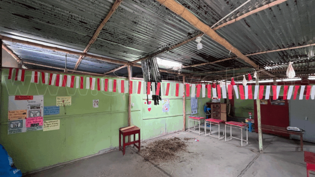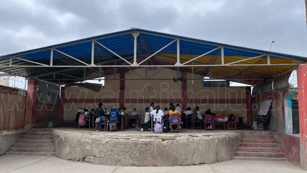 Los escolares reciben clases en ambientes de triplay y calamina, expuestos a filtraciones, humedad y riesgos estructurales. En un caso, un aula en el local comunal perdió el techo por las lluvias y la caída de algarrobas, obligando a los niños a estudiar a la intemperie en un anfiteatro.