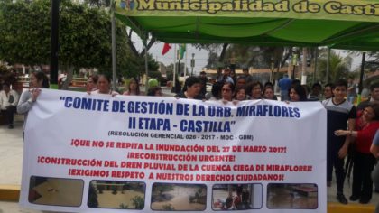 Agregó que el 4 de abril presentaron al alcalde de Castilla, el expediente 01156 exigiendo que se priorice la construcción de un dren para Miraflores. Sin embargo, hasta el momento no tienen respuesta. “Inundación nunca más”, expresaron los manifestantes durante su protesta en el frontis de la Municipalidad.