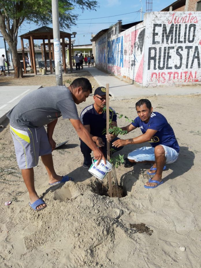 Los moradores del asentamiento El Indio junto a personal de la subgerencia de Salud y Gestión del Ambiente de la Municipalidad Distrital de Castilla plantaron este domingo varias especies forestales y ornamentales en el parque «Ramitos» de dicho sector.