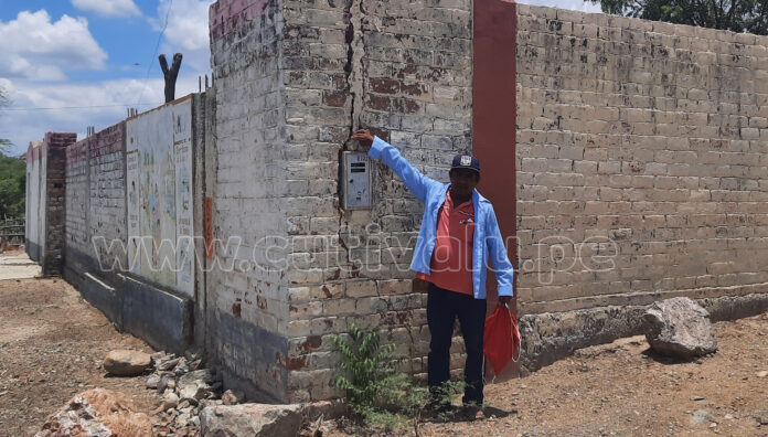 “Todas las paredes del cerco perimétrico están a punto de colapsar. Estamos preocupados por nuestros niños que son inquietos. Está rajado de abajo hacia arriba, todo el cerco perimétrico tiene muros de contención para que los muros no caigan. Esto es un peligro para nuestros niños”, expresó el padre de familia.