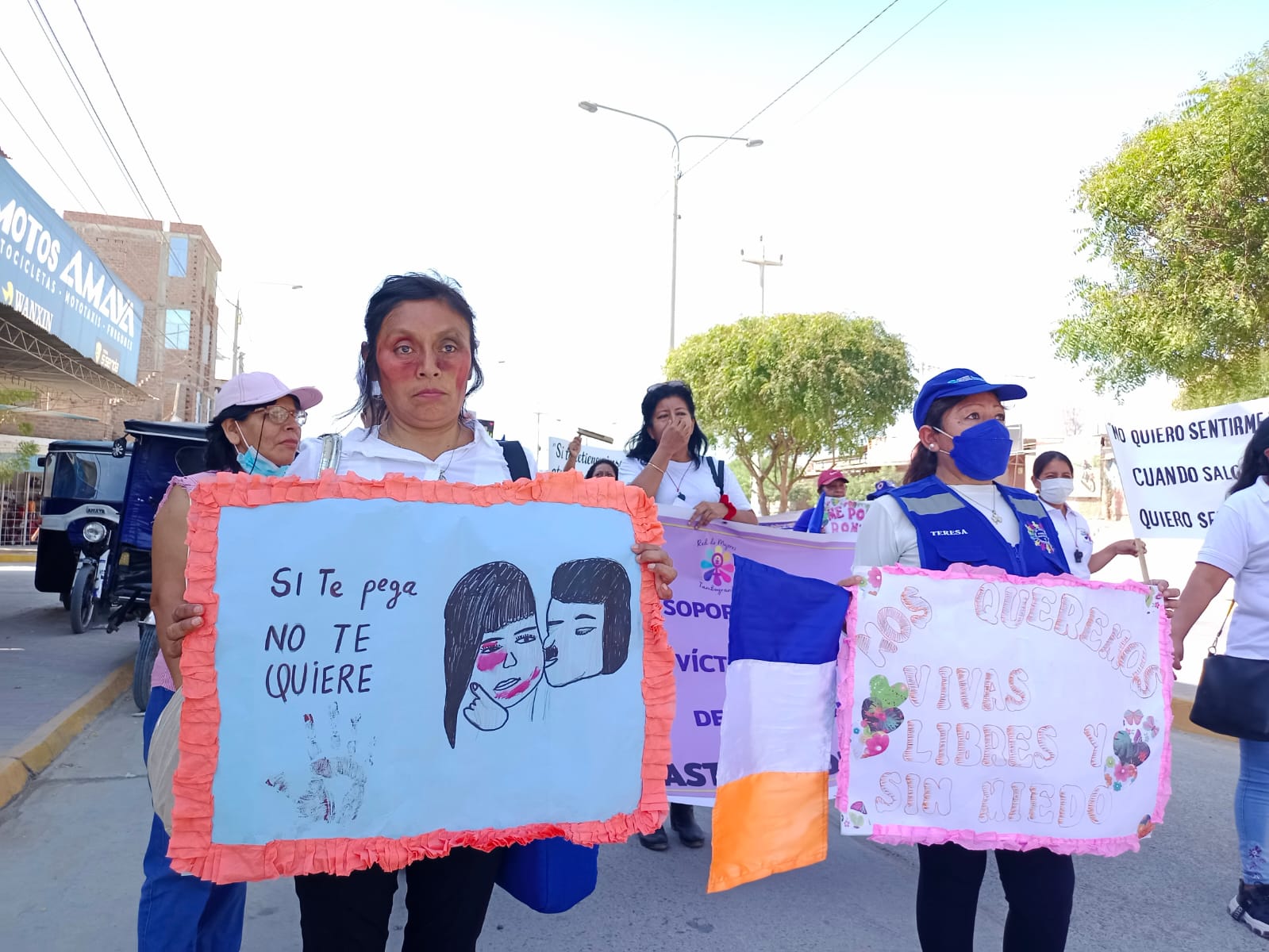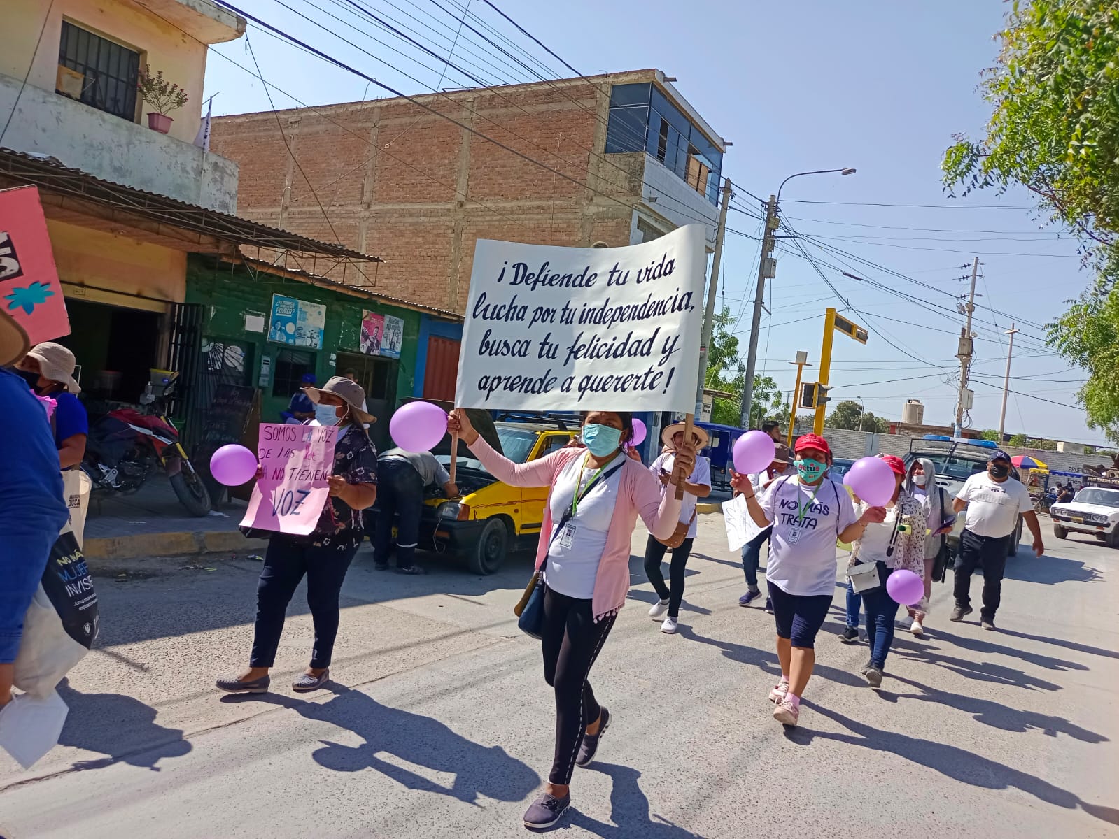 Alrededor de 50 integrantes de las Redes de Soporte y Acompañamiento a Víctimas de Violencia de Tambogrande, Veintiséis de Octubre y de la Red de Facilitadoras Para la Prevención de la Violencia del distrito recorrieron las calles de Tambogrande con carteles, banderolas y con arengas para exigir celeridad en el proceso de investigación y recepción de los casos de violencia. Esto, frente a los 373 casos de agresiones registrados contra las mujeres según el Centro Emergencia Mujer de este distrito.