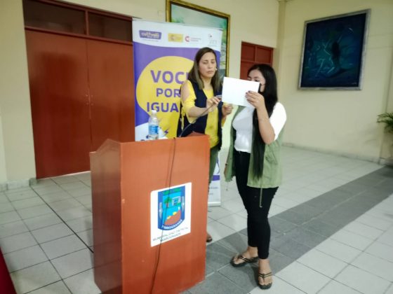 La segunda sesión de la I Escuela de Formación Política Mujeres por la Igualdad estuvo a cargo de la licenciada Nadia Agurto Francia, especialista de gobernabilidad de Intelta-Cutivalú. «Cuando una mujer postula a un cargo público, suele sufrir de acoso político. Por ahí si se filtró un video íntemo de ella o si tuvo más de una relación romántica ya es descalificada por la sociedad. Pero si un candidato tiene un juicio por alimentos, pasa casi desapercibido», puntualizó Agurto Francia.