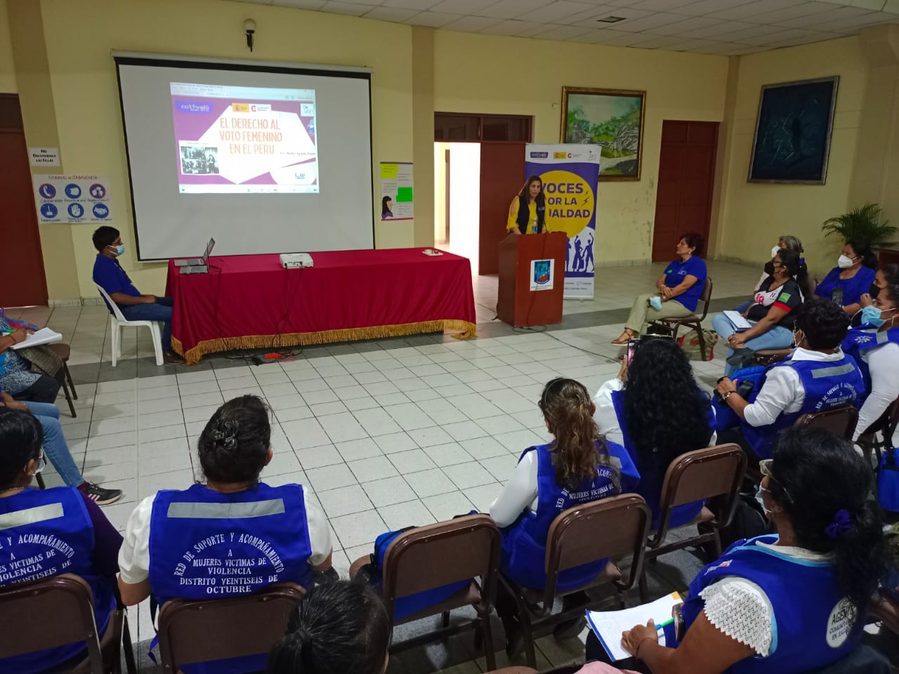 Al menos 100 mujeres de las redes de soporte y acompañamiento a víctimas de violencia de Tambogrande, Veintiséis de Octubre, Chulucanas y La Matanza se capacitaron sobre el derecho al voto femenino en el Perú.