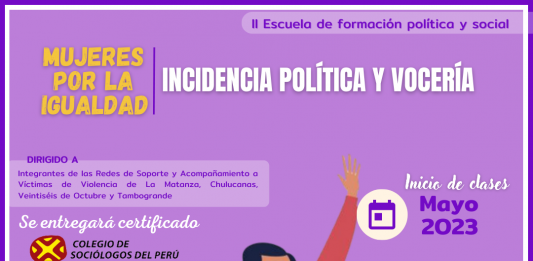 Este 18 de mayo inicia La «Escuela de incidencia política y vocería Mujeres por la igualdad», una iniciativa del proyecto Voces por la igualdad -que ejecuta Cutivalú- y que busca empoderar y formar a 105 lideresas de las redes de soporte a víctimas de violencia de Chulucanas, La Matanza, Tambogrande y Veintiséis de Octubre. Esta … Sigue leyendo Mujeres por la igualdad: Inicia Escuela de incidencia política y vocería dirigida a lideresas de 4 ciudades