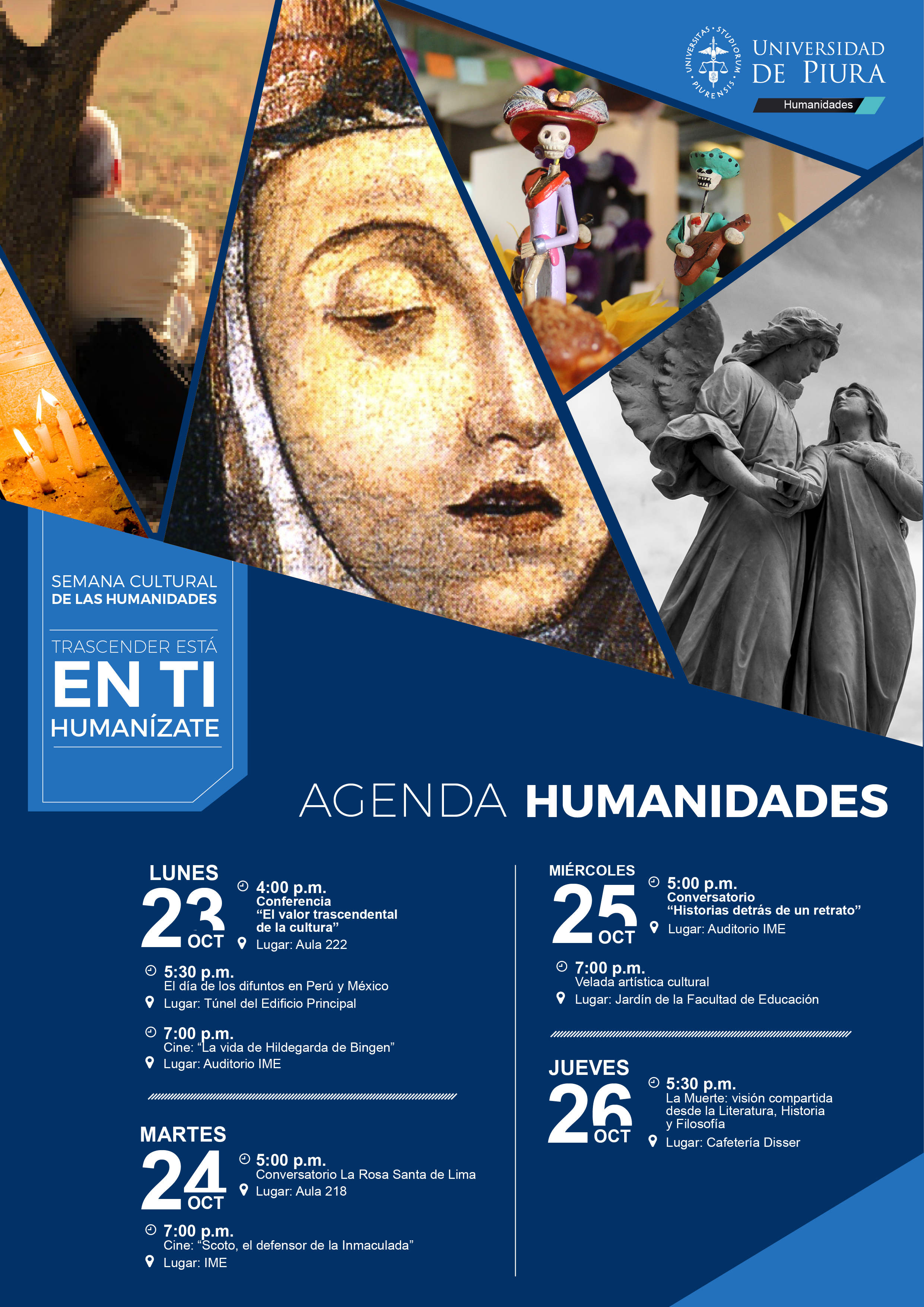 La Facultad de Humanidades de la Universidad de Piura organiza la I Semana Cultural de las Humanidades (SECUH), bajo el lema ‘Transcender está en ti. Humanízate’. Ingreso libre.