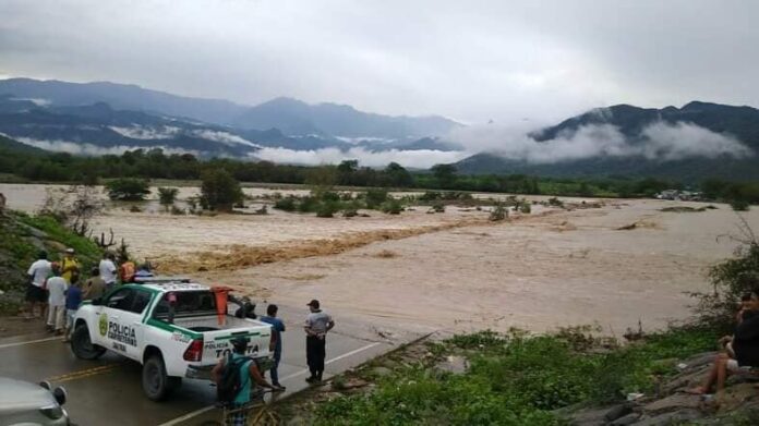 “Hay una tremenda crecida del río, que irá aumentando en las próximas horas porque sigue lloviendo fuerte en la parte alta, sobretodo en Huarmaca (…) el río está muy crecido y nadie se atreve a cruzarlo porque sería arrastrado por la fuerte corriente que trae”, narró Cristian García a través de Cutivalú.