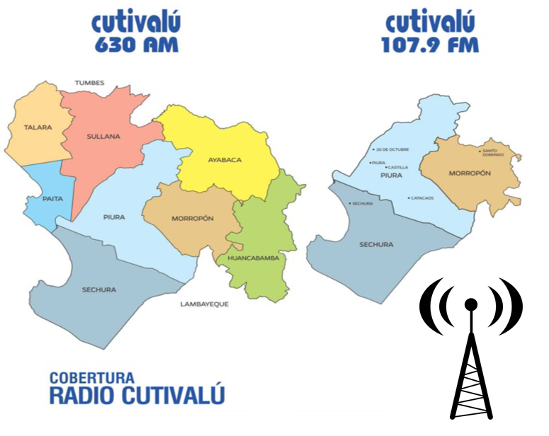Nos escuchar en la frecuencia 630 AM (Cobertura regional rural) y 107.9 FM (Cobertura urbana Piura). También a través de nuestra web con señal en vivo, App Cutivalú y redes sociales (Facebook, instagram, Twitter, TikTok, SoundCloud y YouTube).