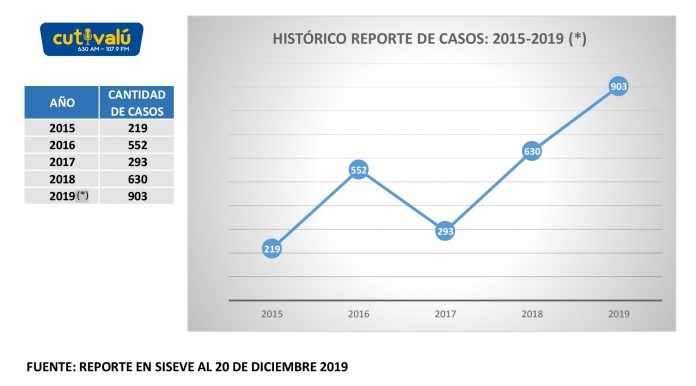 Según el referido portal, en la región se ha evidenciado un incremento en los casos de violencia en las instituciones educativas. Durante los años 2017, 2018 y 2019 se han registrado doscientos noventa y tres casos, seiscientos treinta y novecientos tres casos respectivamente.